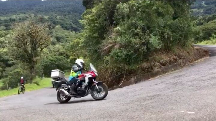 After breakfast, we headed down to San Miguel to loop around Sarapiqui and back to route 32. But the road was blocked by protesters, so, once again, we had to turn around and go back. For some reason, I had tons of fun riding this road, back and forth!! It’s such a stunning route!! Full of curves, awesome views, and waterfalls.