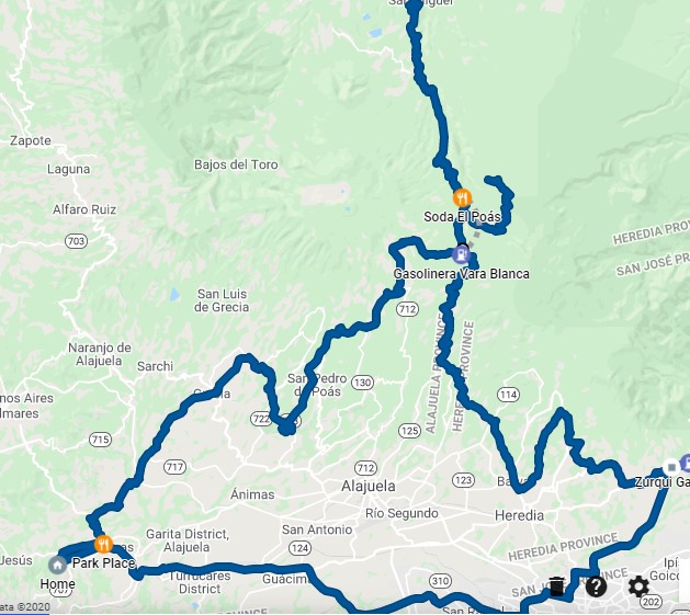 On the way home, Bernard led me down some interesting new roads, and we ended up at Santa Gertrudis to head on over to Grecia, then Atenas, where we had some great cheeseburgers at Rest. Park Place. Highly recommended! The guys are super friendly as well.