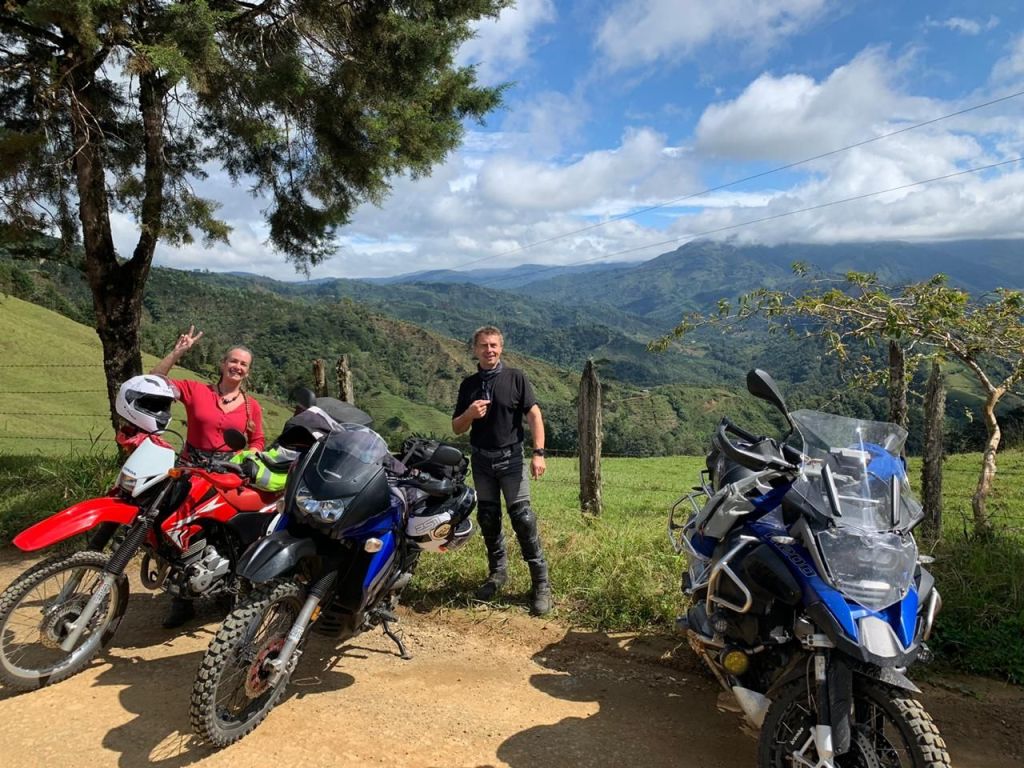 As I had been wanting to go to the volcanos for a while, I was delighted that my friends Althaf and Robert were willing to come with me. However, in the morning, the volcanoes were covered in clouds. No sense riding in the fog. We decided to do Plan B which was head over to Copey via San Cristobal Norte. We took no photos of San Cristobal Norte and Corralillos, but it is a charming, curvy, picturesque route. Yes, with steep, sharp curves, but fun. (Here is a previous blog post about that area: Riding in Costa Rica.)