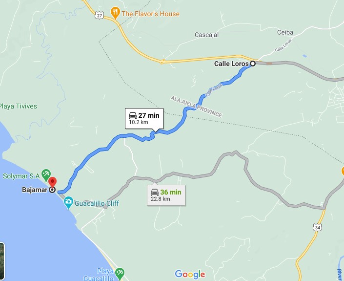 From Orotina I took Route 757 (which I like) to a gravel shortcut onto Route 27.