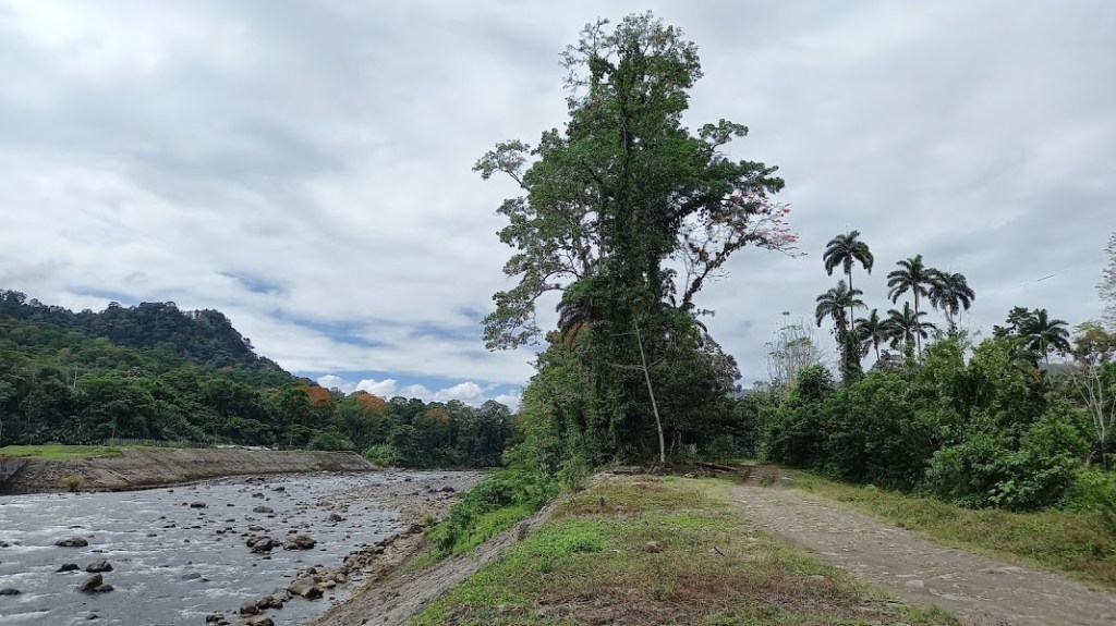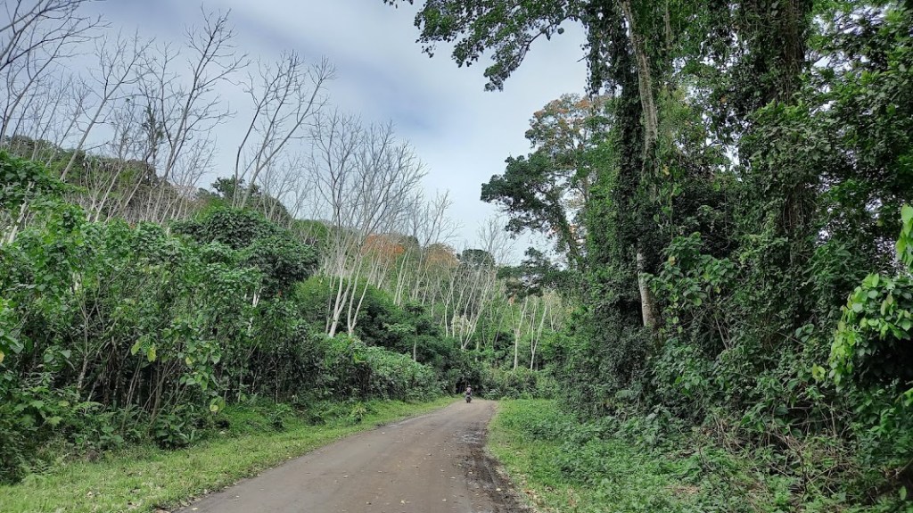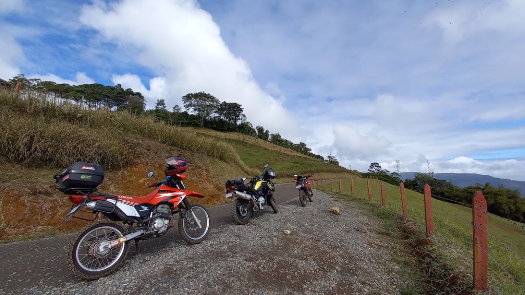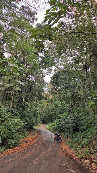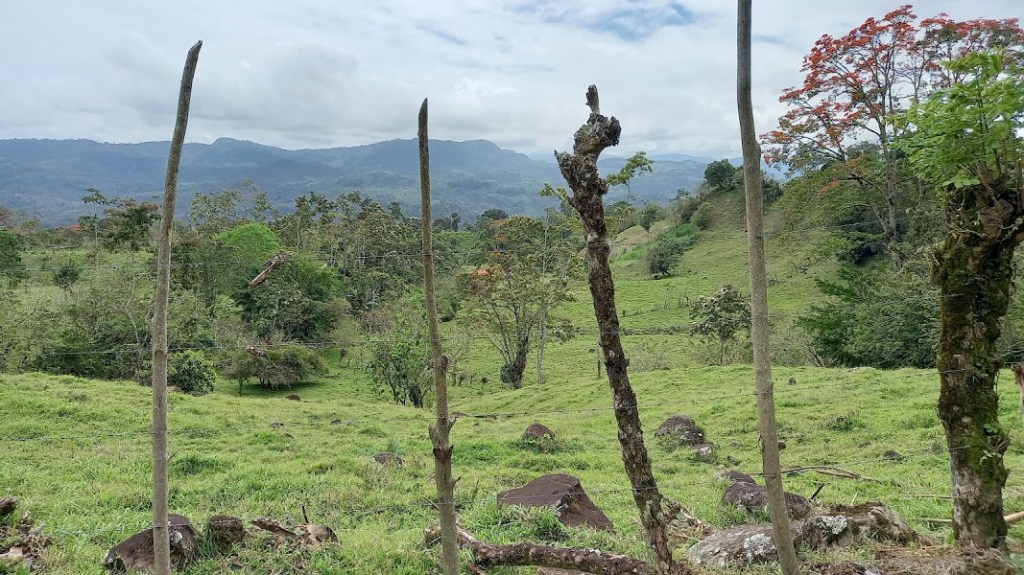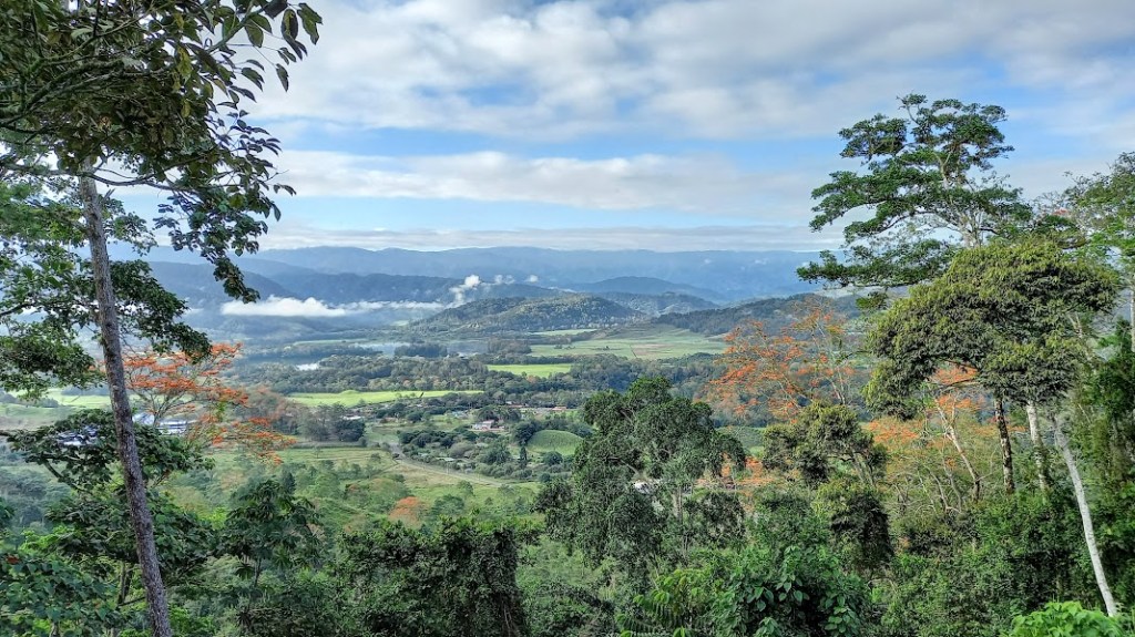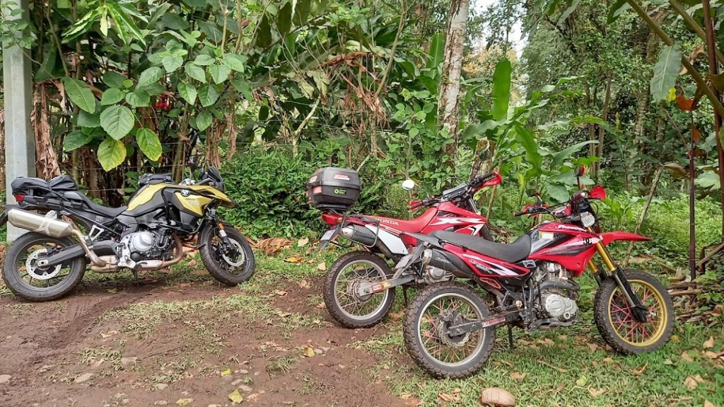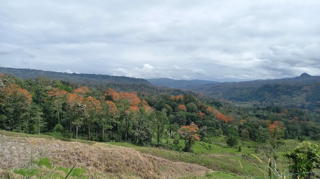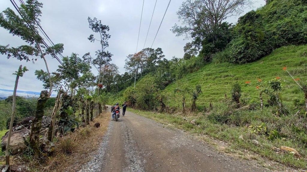 Sitting at the Turrialtico, overlooking the Angostura lake, Fabricio said we could go across to his house to see the views from over there. So, we headed over to Florencia and then the road known as “Ruta entre San Juanes,” going from San Juan Sur to San Juan Norte. The road was muddy, but it was not slippery mud. It was a lot of fun! From the viewpoint up there we looked across the lake to the mountains where we had been not long before.