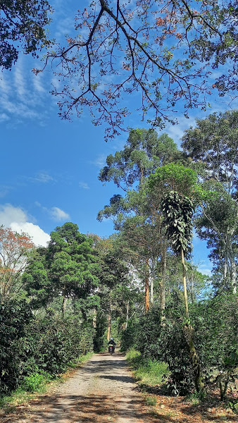 One of the best parts of the trip was riding through coffee fields! This was bigger, rockier gravel, but quite doable. Magic!!