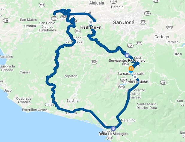 Jose Alonso was kind enough to accompany me most of the way home on route 136, from Puriscal to Turrucares. I was made even happier when he looped around San Miguel. I had been wanting to do this route these days, since I hadn’t done it in a couple of years, and I find it so relaxing. To my pleasant surprise, he took me on a new route that ended up on route 3, not too far from Atenas. Cool!! I will have to find this on my own on Waze. Yay! As I joked, the way to make a biker chick happy is to take her on a route she’s never done before! Hahaha! (Not easy to do with me! :-))