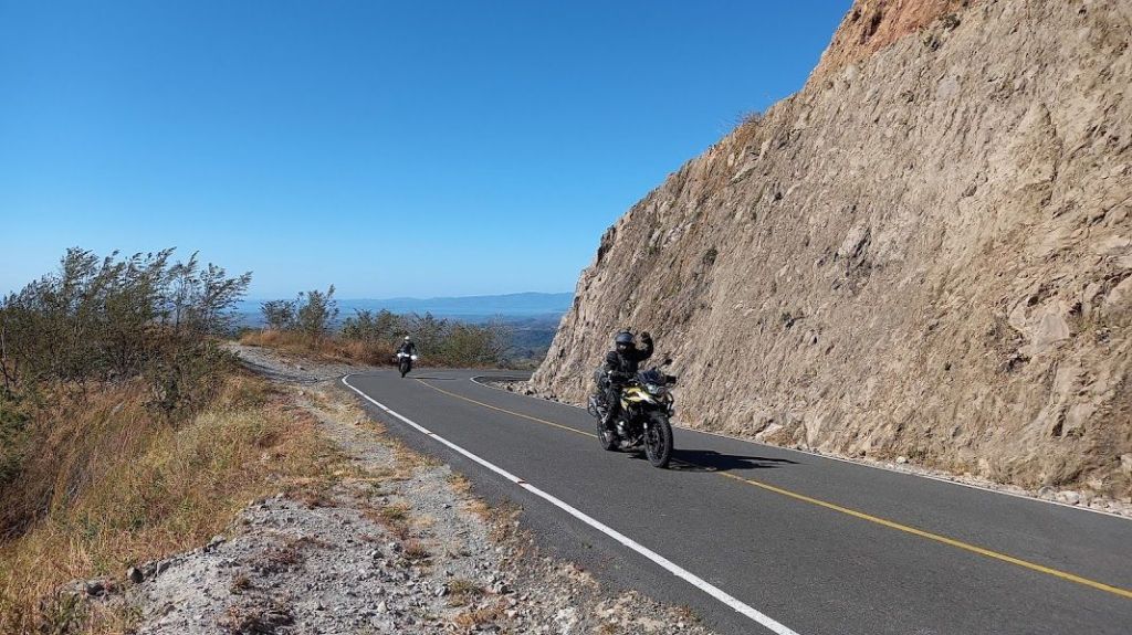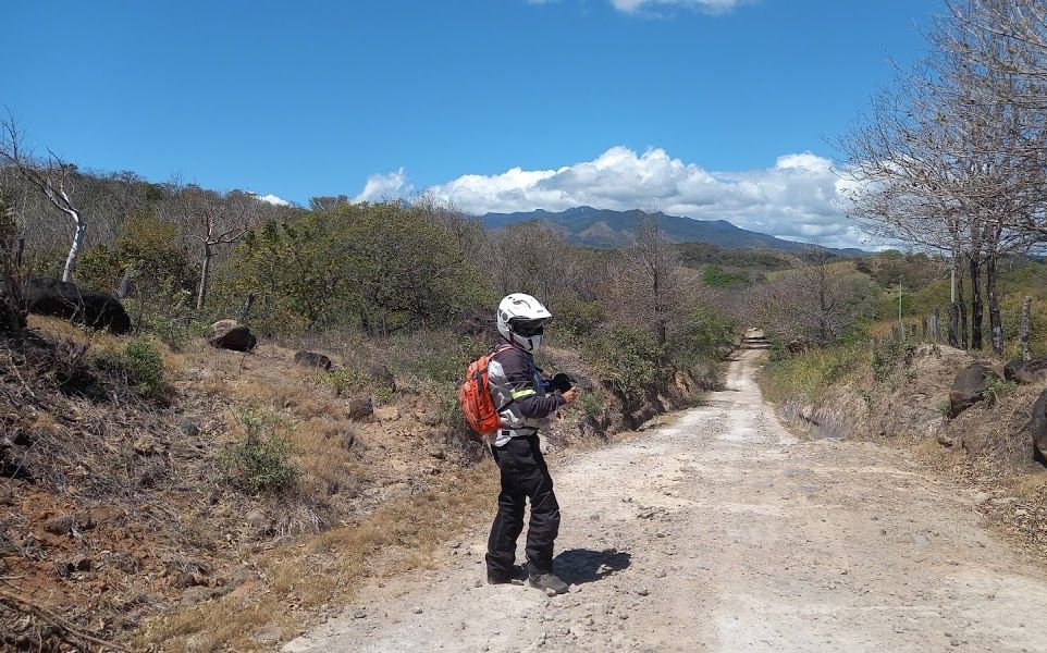 When we got to the next T, Jose Alonso said we could either go right toward Colonia Blanca, which would be a bit technical, or go left towards Liberia. Since it was 4 p.m., we chose to go left on route 918. Such a different, desert-like ambiance! Super cool! All of it! Amazing.