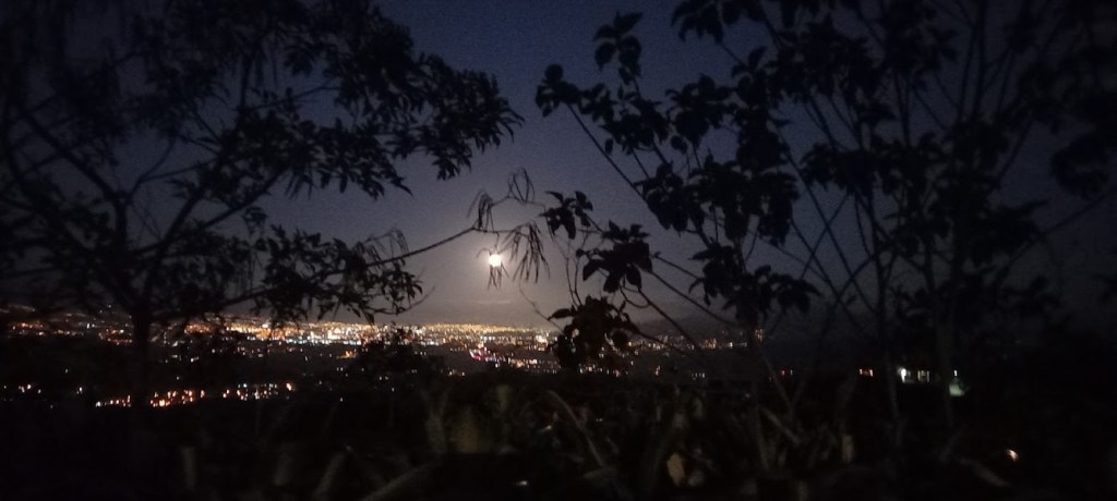 Nearing home, the moon was gorgeous and FAT coming down from the Aguacate.