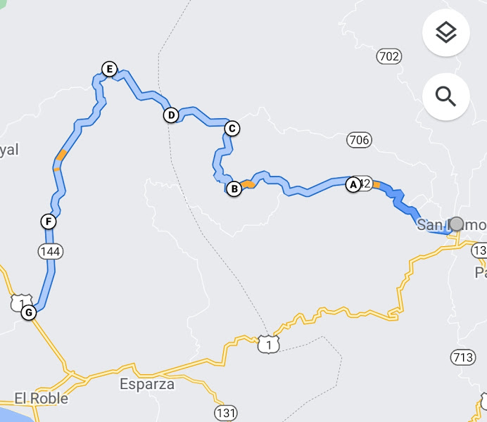 After breakfast at Paraíso Restaurant on Route 1, we went headed towards Piedades Sur. We had no idea of what was to come. 🙂 We rode through Chassoul, then San Antonio and on to Zapotal. As I mentioned last year, this is the rockiest road in the world! Hahaha! Worse than one can image, though, as I have said many times, one can never stop for photos of the worst parts on such roads. Impossible. Pure Rock and Roll!!
