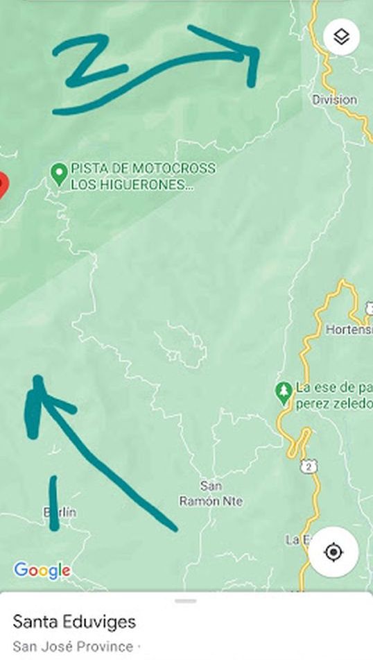 We went from our hotel Los Pinos past Perez onto a little gravel road to San Ramon Norte, then headed over to Santa Eduviges to go from there to Division and Highway 2. I highly recommend this route (one can start from Barrio Boston in San Isidro says Alonso). Awesome!