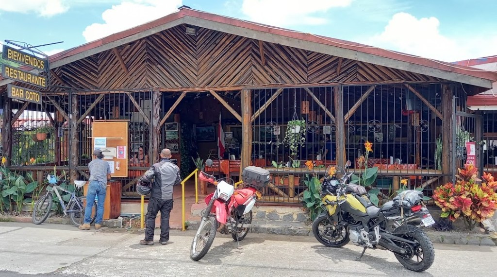 It was a lovely morning to ride Route 126 towards Nuevo Cinchona, the little town which was rebuilt after the Cinchona earthquake in 2009. The views on this “Jurrassic Park”road, as I like to call it, are spectacular. There is one section that now has Quatimundis (Pizotes) because people stop to feed them. I was tempted to stop because I had apples with me, but changed my mind and continued.