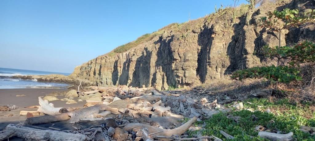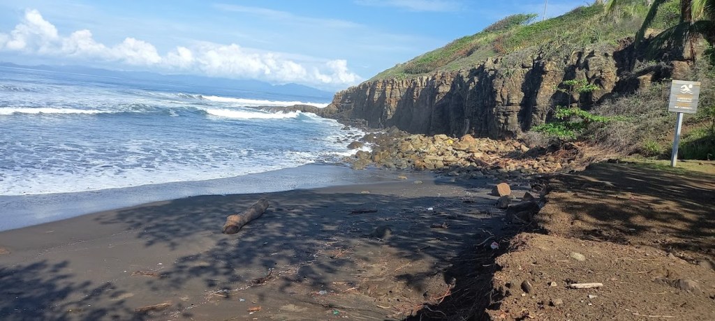 The road into Tivives has a about 200 meters of loose gravel at the entrance, which is better packed now that it has started raining. Otherwise, it is paved, with dirt roads once in the cooperative. Sadly, the driftwood which made Tivives beach so unique is presently gone. Here is a photo of how it was: