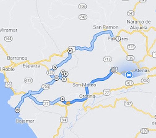 We took route 715 from San Rafael de Esparza to El Cambronero (Route 1), stopped at Last Tinajitas Restaurant for drinks and a snack, then we parted ways, and I headed home via Palmares, feeling complete!