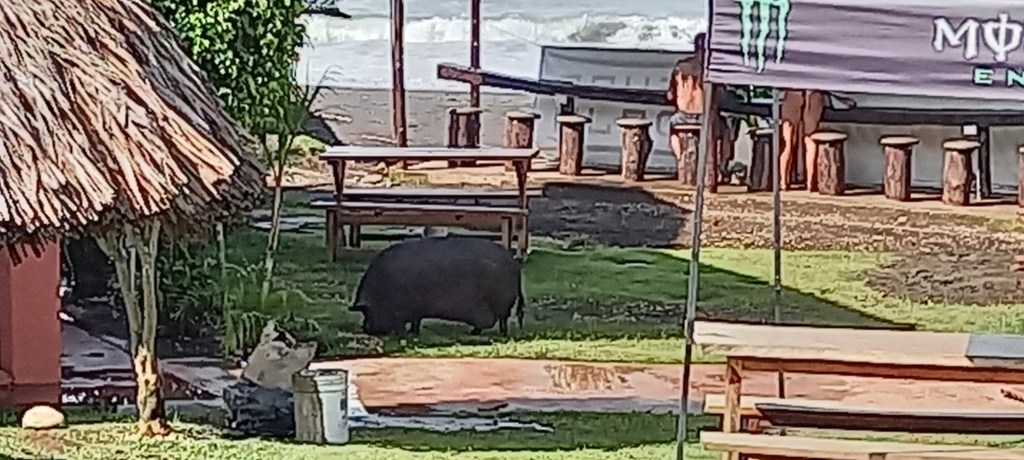 Then I headed to have breakfast at Playa Hermosa, where I finally saw the famous fat pig and was kept company by sweet dogs with festive collars.