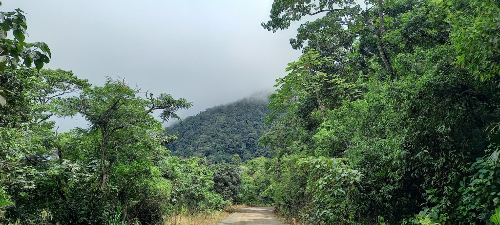 Yes, it had some ruts, but no big deal. At the bottom it was slippery from rain. I have been getting used to that sensation this rainy season, of sliding on wet mud. I don’t particularly like it, but so far so good.