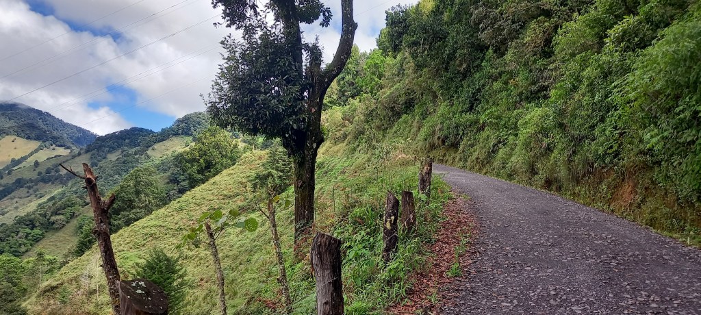 Years ago, I accidentally took Calle Abejonal-San Francisco on a ride. I remember the stress of the last downhill curves on gravel before happily and unexpectedly arriving on route 226. Yesterday, my friend Robert and I decided to go check it out to head over to San Francisco de Leon Cortez and down to La Legua. I wanted to enjoy the views from up there.
