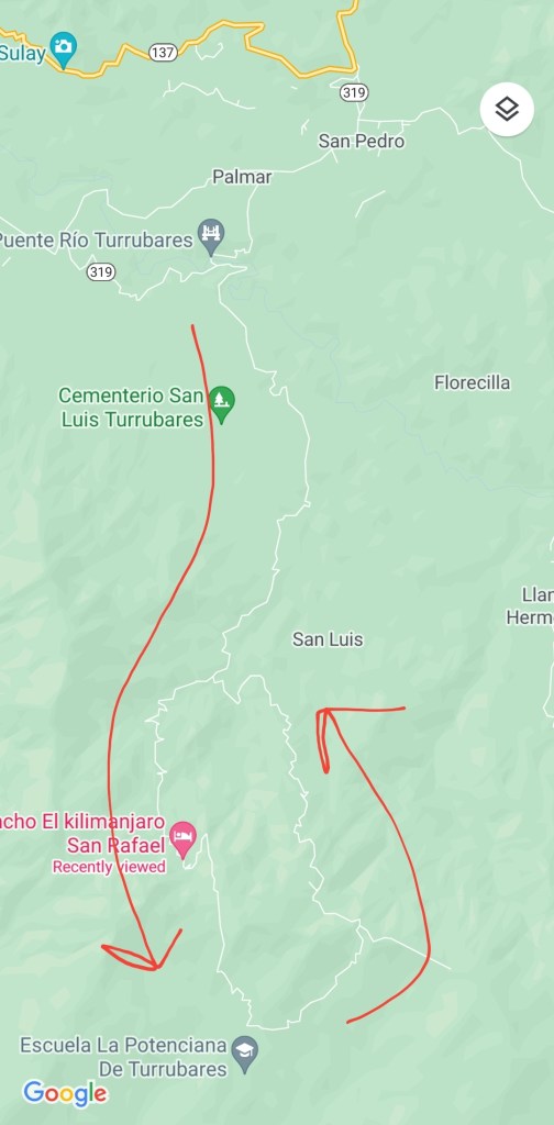 After breakfast at La Choza de Doña Emilce on route 137, we headed towards San Pedro de Turrubares, and up past San Luis.