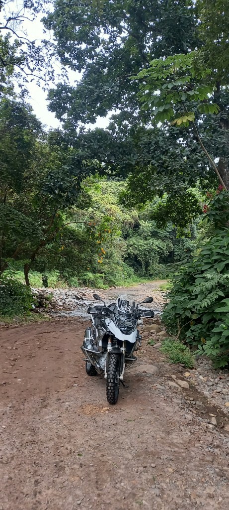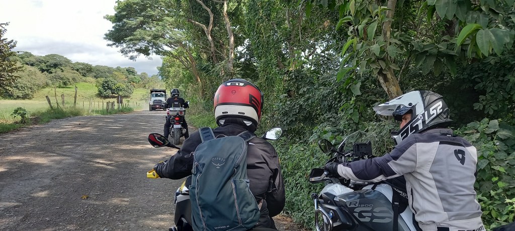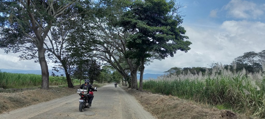 Down on route 1, we crossed Cuatro Cruces to head over to Chomes on route 604, but we came to a gate which we were told is only open during the week. It was lovely to ride in the cane fields. We were definitely in Central America! 🤣 I was once again surprised that the road was paved, though poorly.