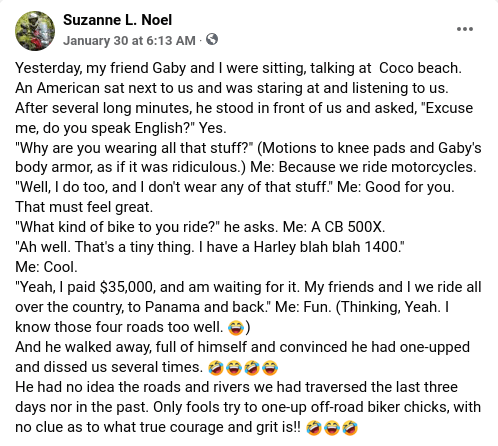 Roy, Marco and Manuel headed home. Luis Fabian, Gaby and I headed to Tilaran in the dark windy night, where Adrian and Berny joined us (to do Recon on Sunday to Guatuso!). Richard went home on his own. I am sure we each closed our Península adventure with gratitude for the fun and beauty, but especially for the company. Many thanks once again to Roy for organizing this trip. Yay! More fun next year!