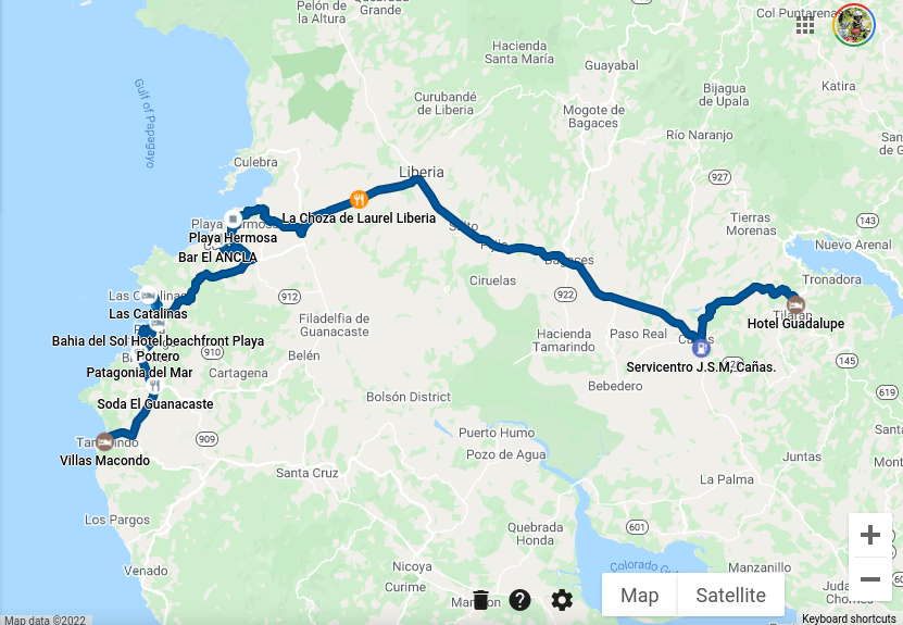 The Monkey Trail route is paved. One uphill part must have been quite the challenge when it was gravel. I loved this route through the hills of Guanacaste. It must be lovely during the rainy season, though crossing the rivers must be quite a challenge. Not sure if I would try it on my motorcycles.