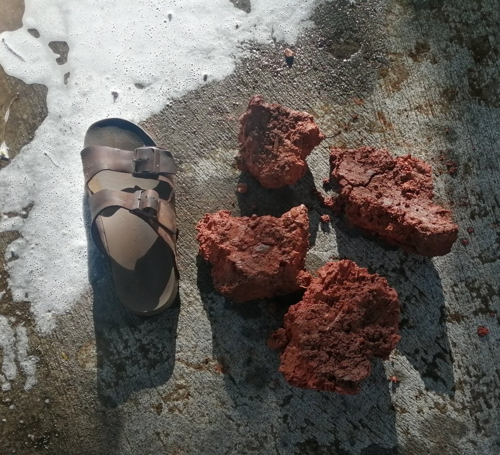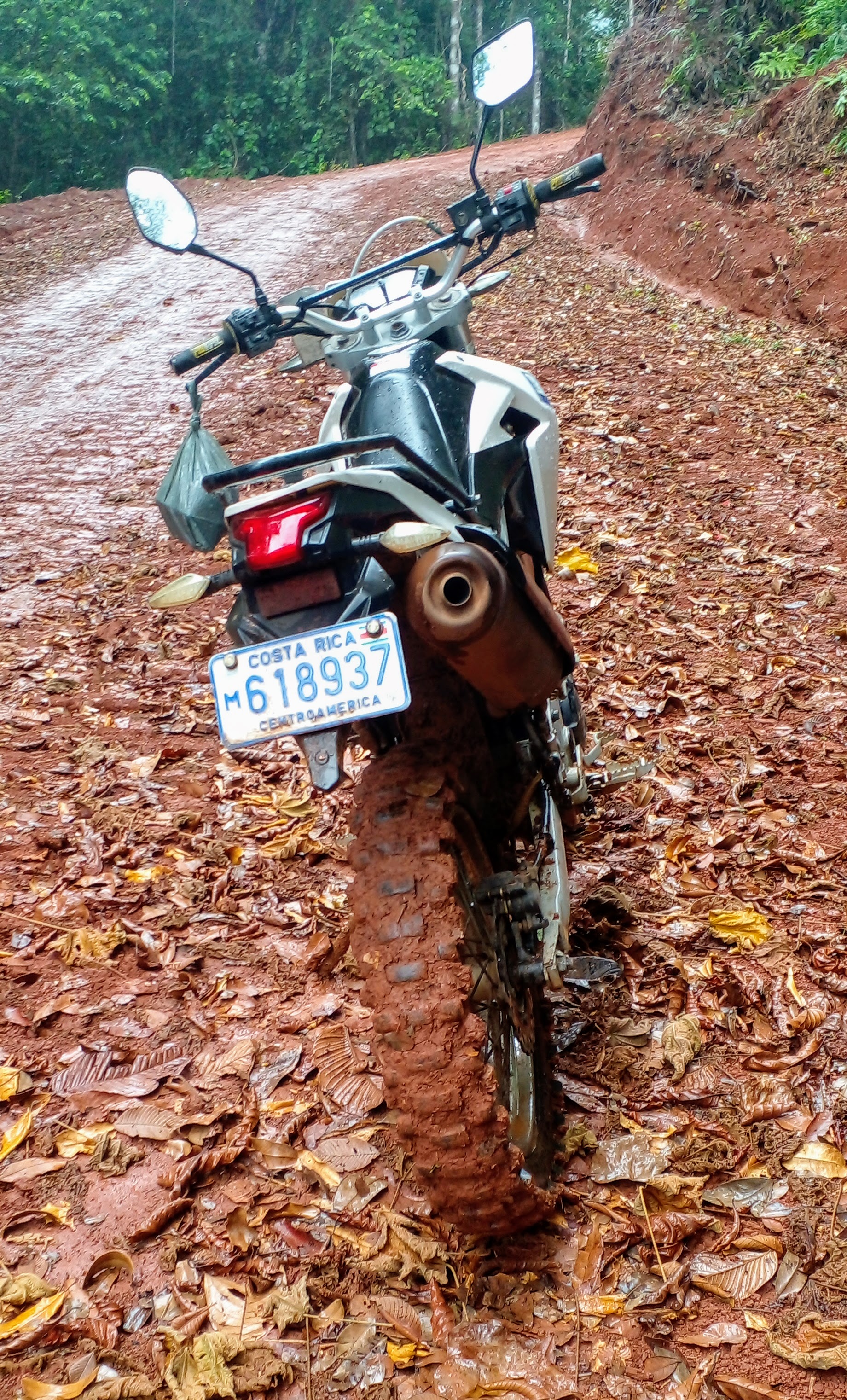 The next day, while washing Storm, I took several chunks of clay out from behind the back fender. Then I took Storm to the mechanic for minor fixes (new mirrors since one had broken), despite my tired soreness! And, yesterday, I took her for a new Motoz Tractionator Adventure front tire and to get pressure washed since another piece of clay fell out of who knows where! 🙂 She had loved it all, of course, even the falls!