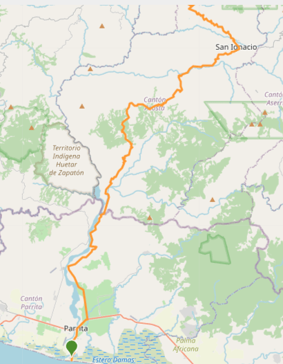 We intended to ride towards Tulín to go through Gamalotillo, but the road was way too slippery in the rain, as most of it is red clay. We turned around and headed straight to Parrita to go to Playa Seco Beach.
