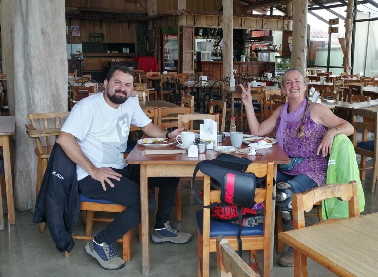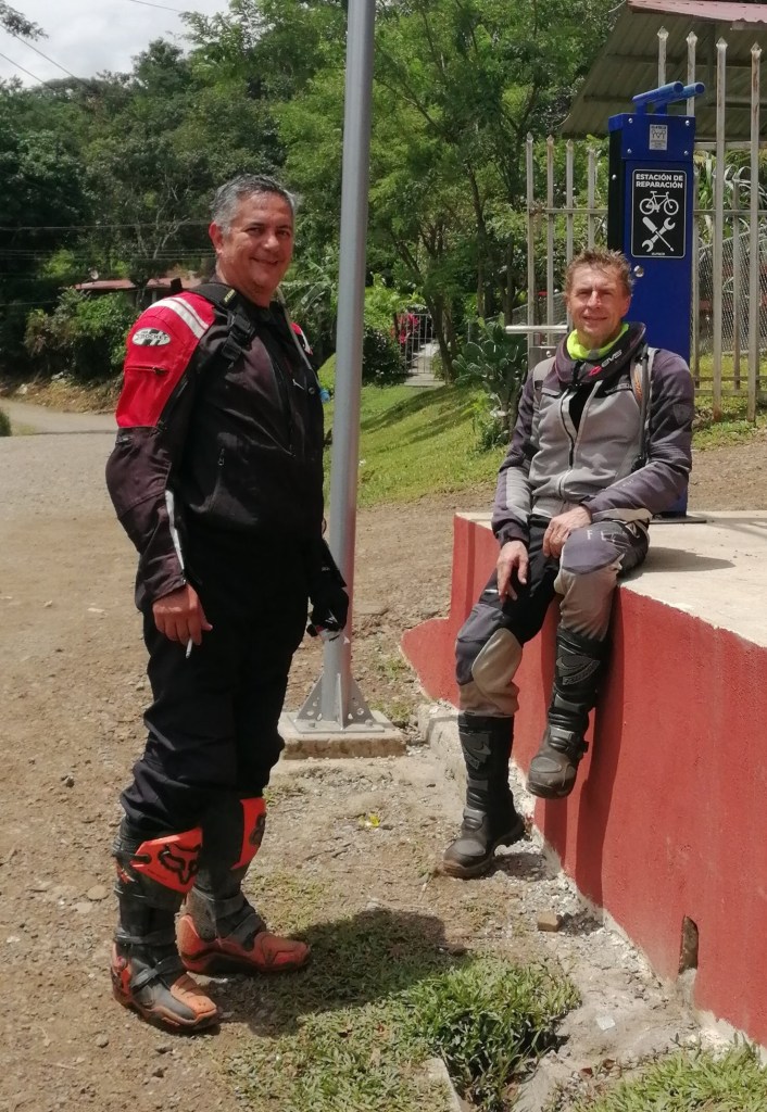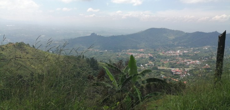 Yesterday, Robert and I had a smooth, easy ride to Laguna de Hule, then down to Bajos del Toro and Sarchí, where we decided to go to Cerro Espiritu Santo in Naranjo. The little road up is old cement, with lots of holes, but easy. At the top there is an old monument and small ampitheater. Nice viewpoint to enjoy a few minutes of wide vistas.