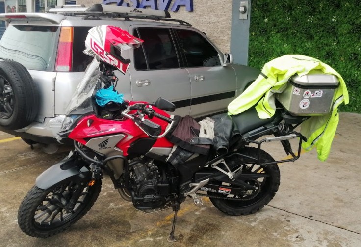 We had several sponsors. I give my heart-felt thanks to Honda CB500 F/R/X Costa Rica, Honda Motos Costa Rica, REPSOL, SW-MOTECH Costa Rica, Motomundo, MotoPartes, Graficart, Proyecto Musical Mario Quirós, Motogram por las hermosas fotos, Moto Sport Tire, y Hotel El Tirol.)