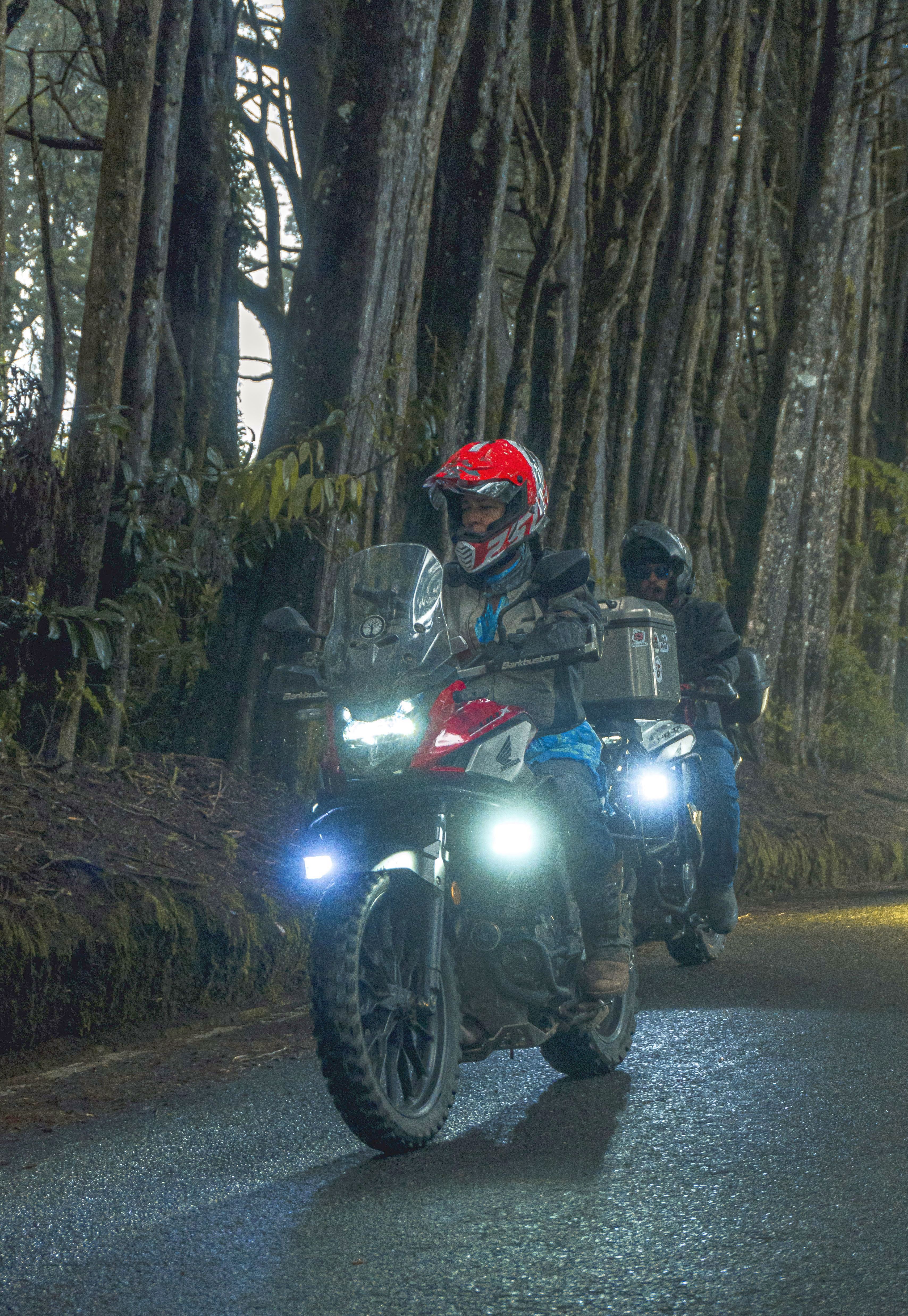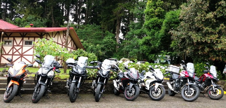 We rode in a calm and orderly fashion to the Hotel Tirol in San Rafael de Heredia, grateful that the hard rains of the last few days had let up. There, group member and CB500X owner, Helena Garfia administers the hotel. Amazing life-long motorcyclist from Spain. I am so excited to have met her!
