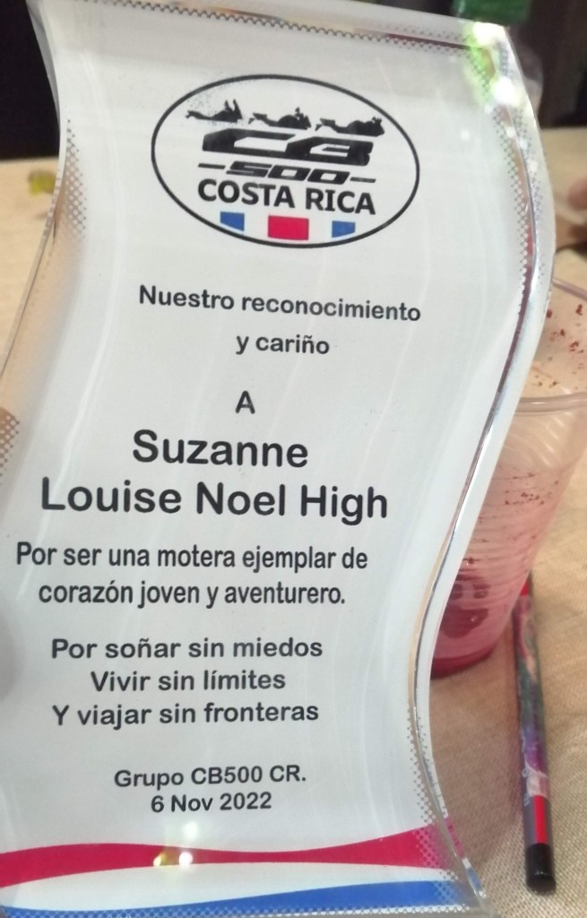 A totally unexpected and deeply moving surprise was that they gave me an plaque of acknowledgment, honoring me as a motorcyclist! Wow.