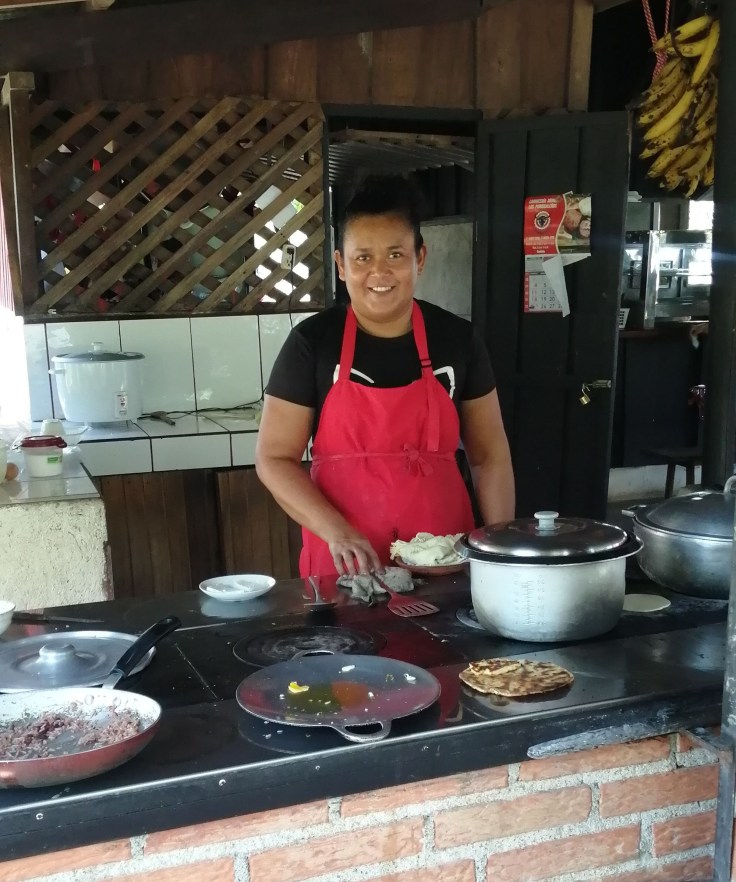 They told me they were hungry, so we stopped at Soda TurrubarΓ‘ for coffee and a few “Gallos” (tortillas with cheese and one with meat) under the hot tin roof. π Silvia cooks on a wood stove. For some reason, I really like the coffee there. Maybe it’s the frothy milk.