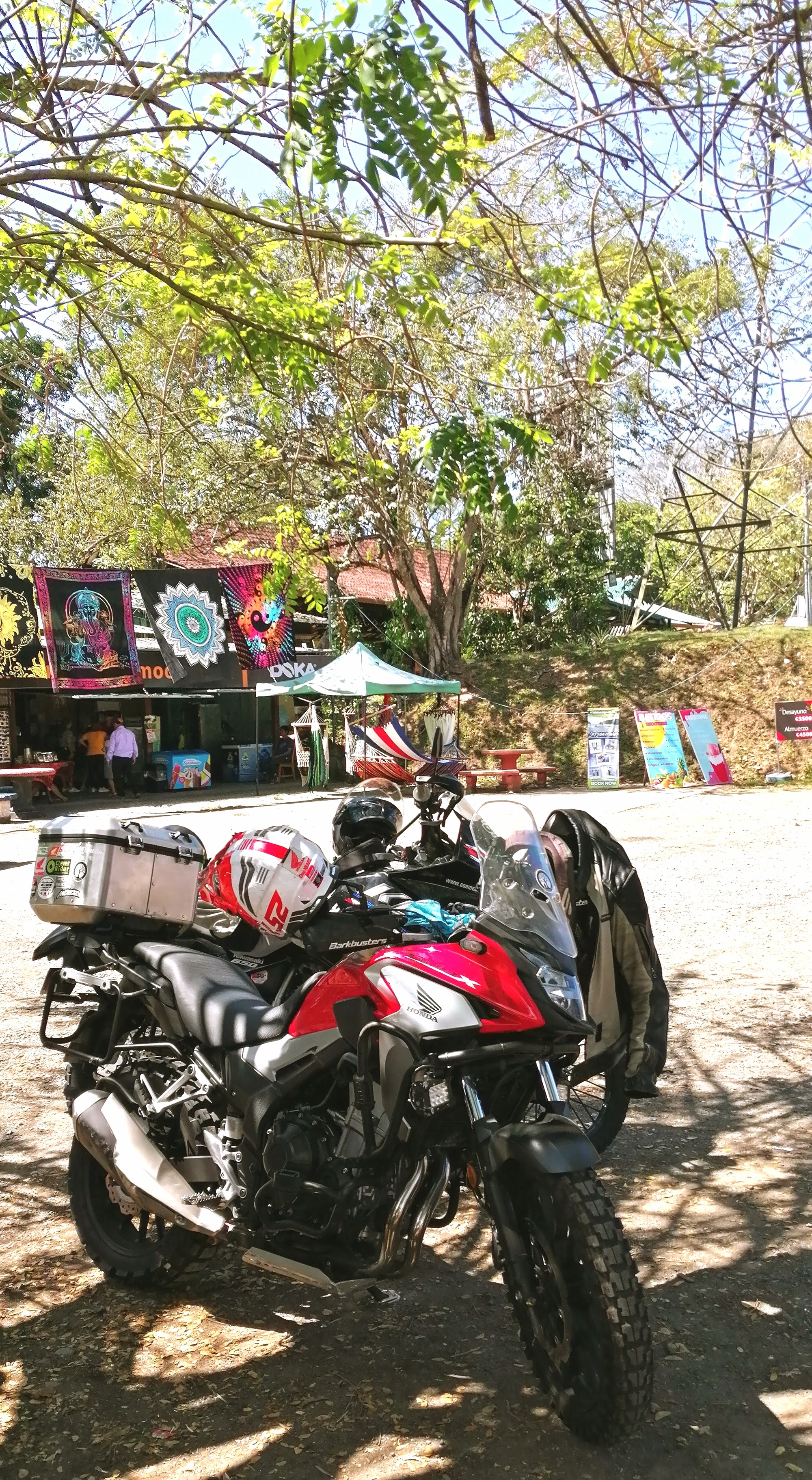 It was a lovely morning as I headed out to Go Ride Moto in La Garita, sunny skies all around. On my way, I stopped for a snack at Fiesta de Maiz, thinking it might be a while before I had a chance to eat. I had a quick “Prensada” (cheese pressed between two tortillas) and was attended to by friendly Luis Fernando, who told me how cold it was up where he lives in San Isidro de PoΓ‘s. That he only takes cold