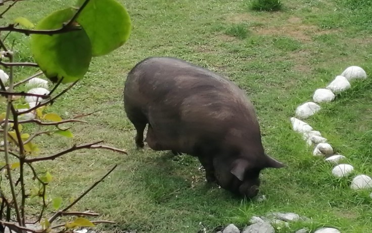 We had lunch at Bowie’s Point in Playa Hermosa. We sat at the balcony, which has an ocean view. There was one Scarlet Macaw on one of the Beach Almond trees. Always delightful for me. We also saw Morita the big, fat pig. She is famous in that area. Hilarious!