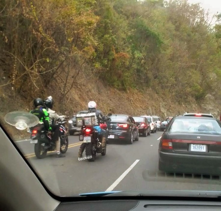 The traffic was quite heavy on the way home. In fact, it totally stopped after a while. (My friend Ricardo saw us and took a photo. π Yet another cool happening.) Roger asked if we could go on the right, on the dirt and grass, and of course I said, “Go for it.” Hahaha! So, they had a little bit of off-road adventure after all.