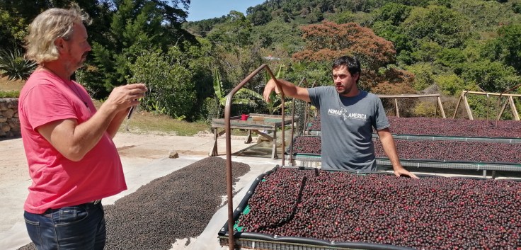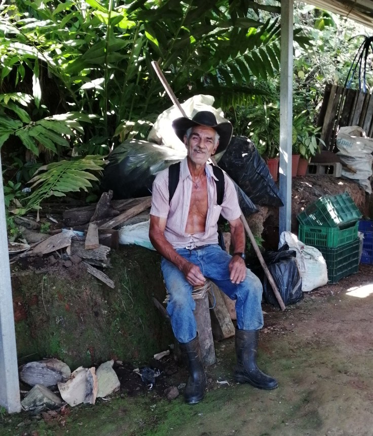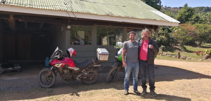 We stopped by for a quick visit with Luis Rojas, the owner of Go Ride Moto, at his beautiful farm, Finca Las Mercedez, almost falling on the rocky road in. 🙂 The little curve in was the most challenging part of our trip! Hahaha! But, as we agreed, “almost” doesn’t count when riding. We made it for a nice visit for coffee and cake and a tour of his rental house and the coffee dryer.