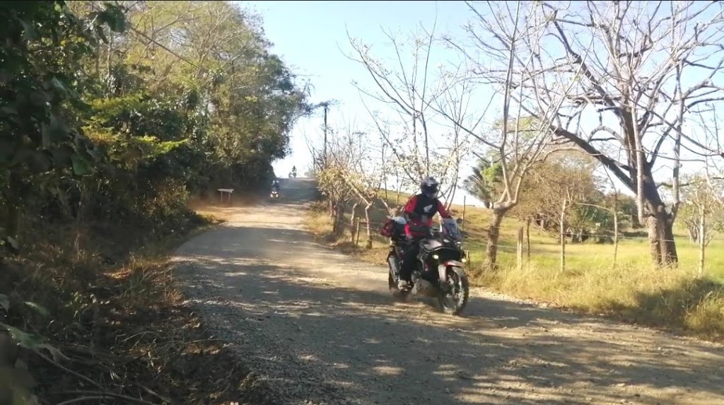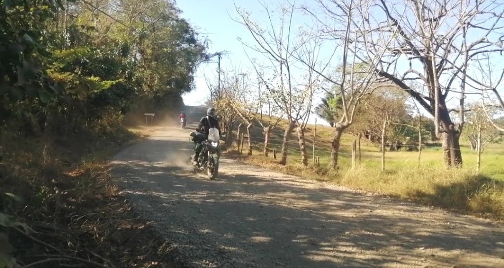 We met up with the group at the entrance to Tempate road, then headed there and beyond. Nice typical road! ๐ Mostly flat, with one up and down hill, and one easy river to cross. It was such a joy to ride along such classic Guanacaste scenery.