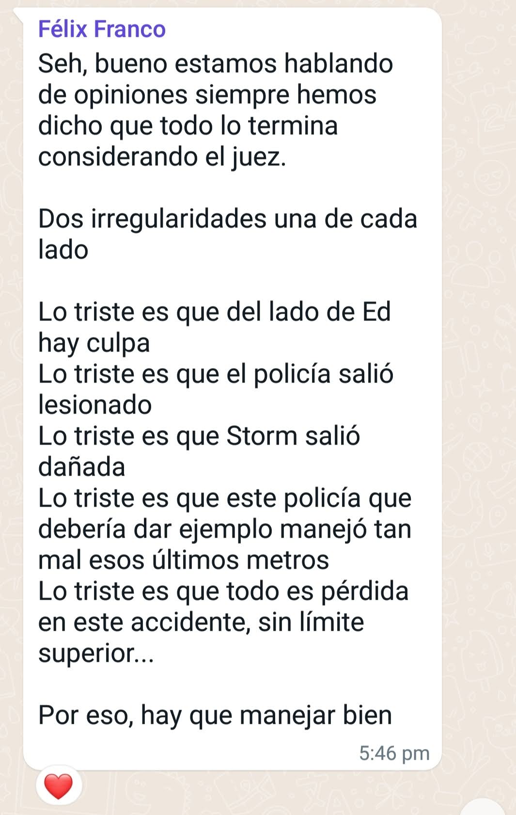 About two weeks ago I lent my beloved Honda XR 250 Tornado, Storm, to a friend while his motorcycle was being fixed. On the afternoon I returned from a trip to Nicaragua (March 21) he had an accident with a GAO policeman. The policeman is presently in the hospital with a broken ankle, broken right foot, and broken nose. My friend is OK. Thank God it was not worse!