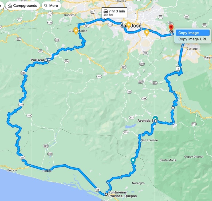 The road from Parrita to Puriscal is also in good shape, and we continued to have fun flying like eagles on our Honda Wings! π