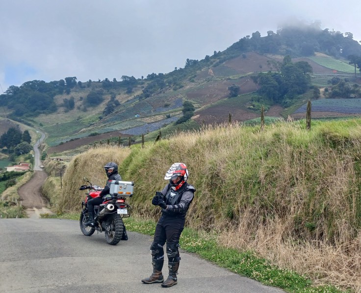From La Herediana, we took route 415 over to Guayabo. I love this route. It has great views and is lots of fun, despite it being mostly asphalt. There are a few small sections of easy gravel, and one M where the road was fixed after a major landslide — where one goes up, down, up, and down on gravel. No big deal. Just more fun.