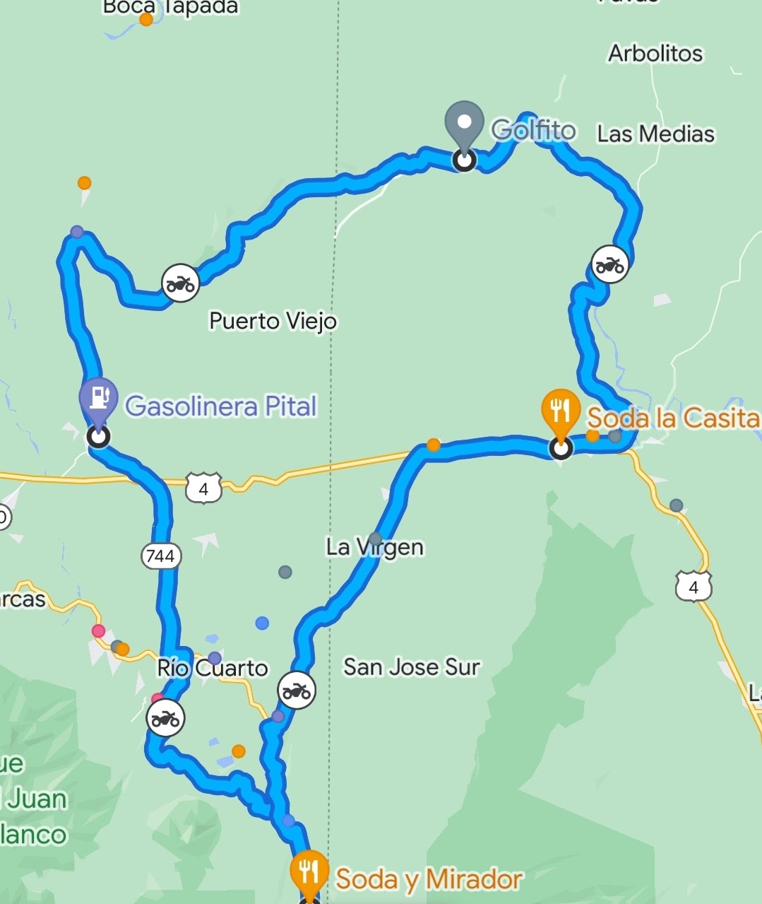 The road to Golfito has a lot of large, loose gravel, but is easy and fun to ride. Once there, we inquired and were told we could continue to Puerto Viejo de Sarapiqui, which we did! 😃Yay!