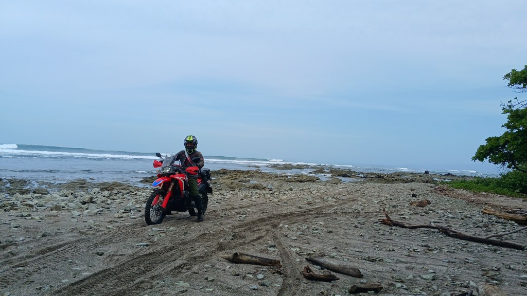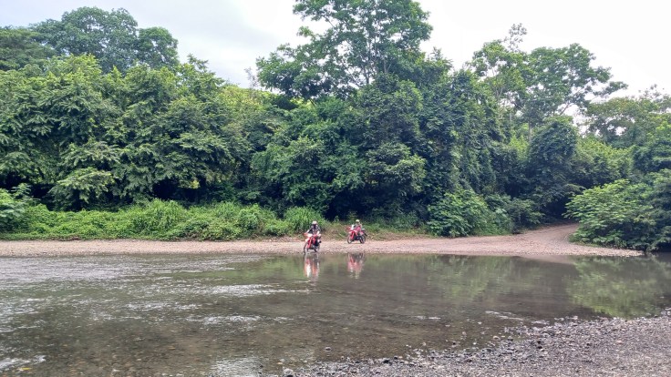 First, when we arrived at Rio Bongo, we weren’t sure whether to cross or not. We hung around quite a bit trying to decide. Hahaha! Finally, Jorge went ahead and crossed. At one spot, it was relatively deep. Having dropped Sahara on my frist trip to the Peninsula in this very same river, I was nervous about crossing. Once she starts going, she goes. Jorge was kind enough to take her across for me.