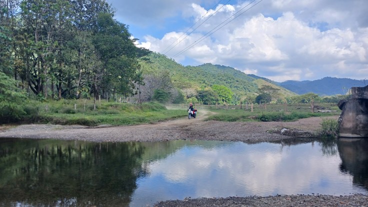 The next day, I met with the team in Jicaral. We took 162 to San Francisco de Coyote. I have only done 162 once. It is now mostly paved. One has to cross a few small creeks. I don’t know what happened to the river I had crossed when I went alone. 🙂 I missed the turn off to Zapote. Not sure how, since I have done that route several times. I was sorry I had missed that. AND, I found myself once again riding alone – and it wasn’t the last time. (Grin!)